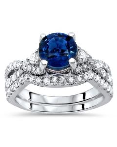 Sapphire Engagement Ring Set Diamond Bridal Ring Sets Blue Sapphire Wedding Set 1 83 Carat 14k White Gold Certified Halo Pave Handmade